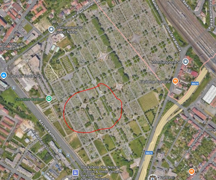 In the cemtery near the CWGC section and the French military section, perhaps section 23.