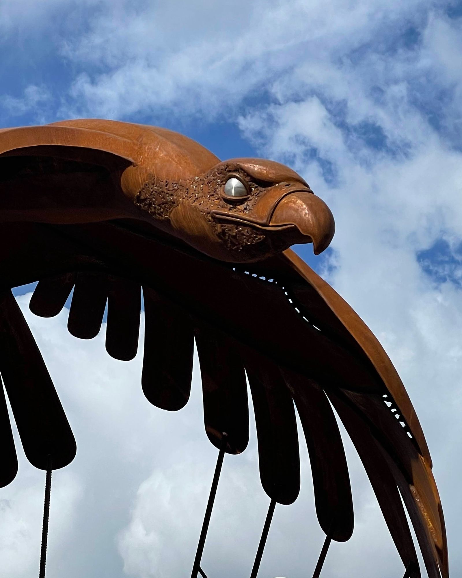 MonumentThe memorial comprises a four-meter-high statue in wrought iron. A stylized eagle, flying northeast toward Grave city center, forms the cupola of a parachute joined by suspension lines down to a four-sided pyramid-form base.