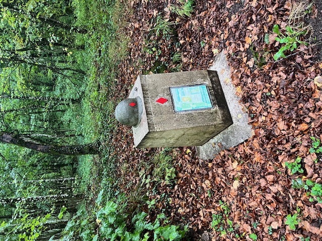 MarkerA concrete memorial with a WW2 American helmet on top; a small plaque is attached to the front of the memorial.