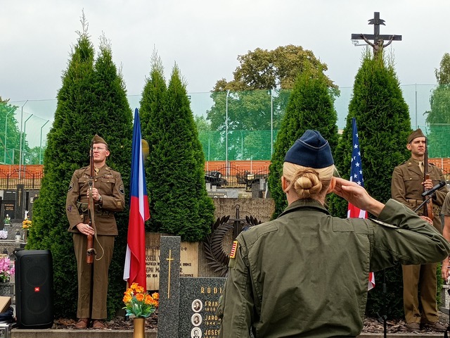 Located in the cemetery along side the graves of Czech freedom fighters killed in World War 2