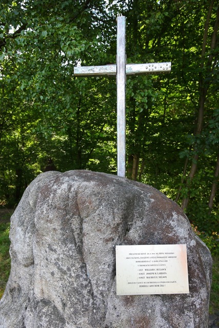 The monument remembers the crew of B-17 (44-6359) of the 20th Bomber Squadron, 2nd Bomber Group, 15th US Air Force, which was shot down on August 29, 1944, during "Mission 263". The crewmen killed in action were: 1/Lt. William C. Bullock Jr.; S/Sgt. Joseph M. Laratta; and, S/Sgt. Maurice E. Nelson. Six of the remaining crew members were taken as POWs, and the Co-Pilot, 2LT Clarence Jackso,n was able to escape and evade capture with the help of local civilians and partisans after this "Air Battle over the White Carpathians". The three crewmen killed were buried in the churchyard in Kasava.