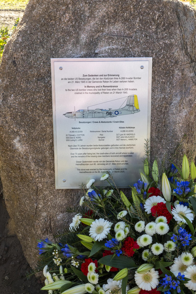 On 21 March 2025, the 80th anniversary of the crashes, aircrew family members, local officials and representatives of U.S. Army Garrison BENELUX and German Bundeswehr gathered in Hülsten- Holtkämpe to dedicate the memorial stone in remembrance of the fallen U.S. Airmen.