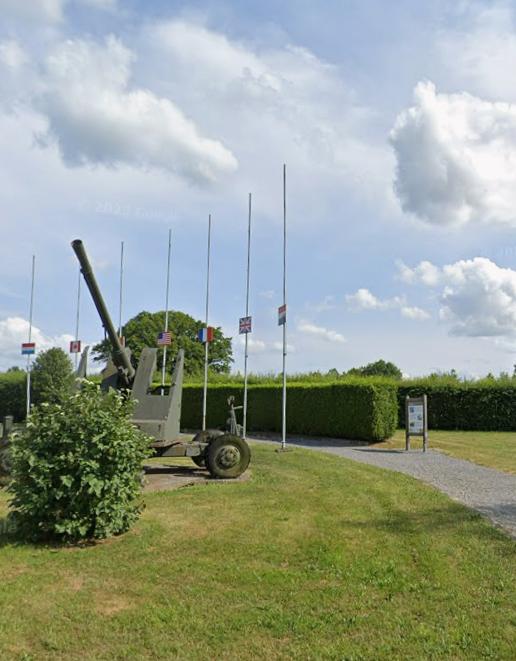 MarkerA rectangular information board mounted on a wooden base commemorating the Battle of Imbrechies, which occurred on September 2, 1944, when U.S. troops of the 60th Infantry Regiment, 9th Infantry Division entered Belgium and reached the Imbrechies ridge. The battle was fought between American forces positioned in Monceau-Imbrechies and German troops in Macon, which resulted to 12 casualties, including 1st Lieutenant Claude B. Cook. The board is written in both English and French.