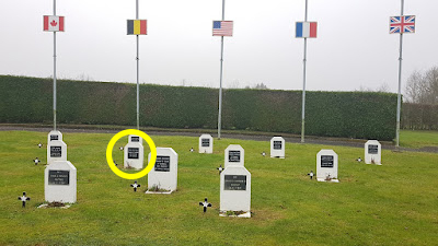 MarkerAn upright grave-style memorial bearing a rectangular black plaque on the front honoring Private First Class Charles A. Danies, who was killed during the liberation of Belgium on September 2, 1944.