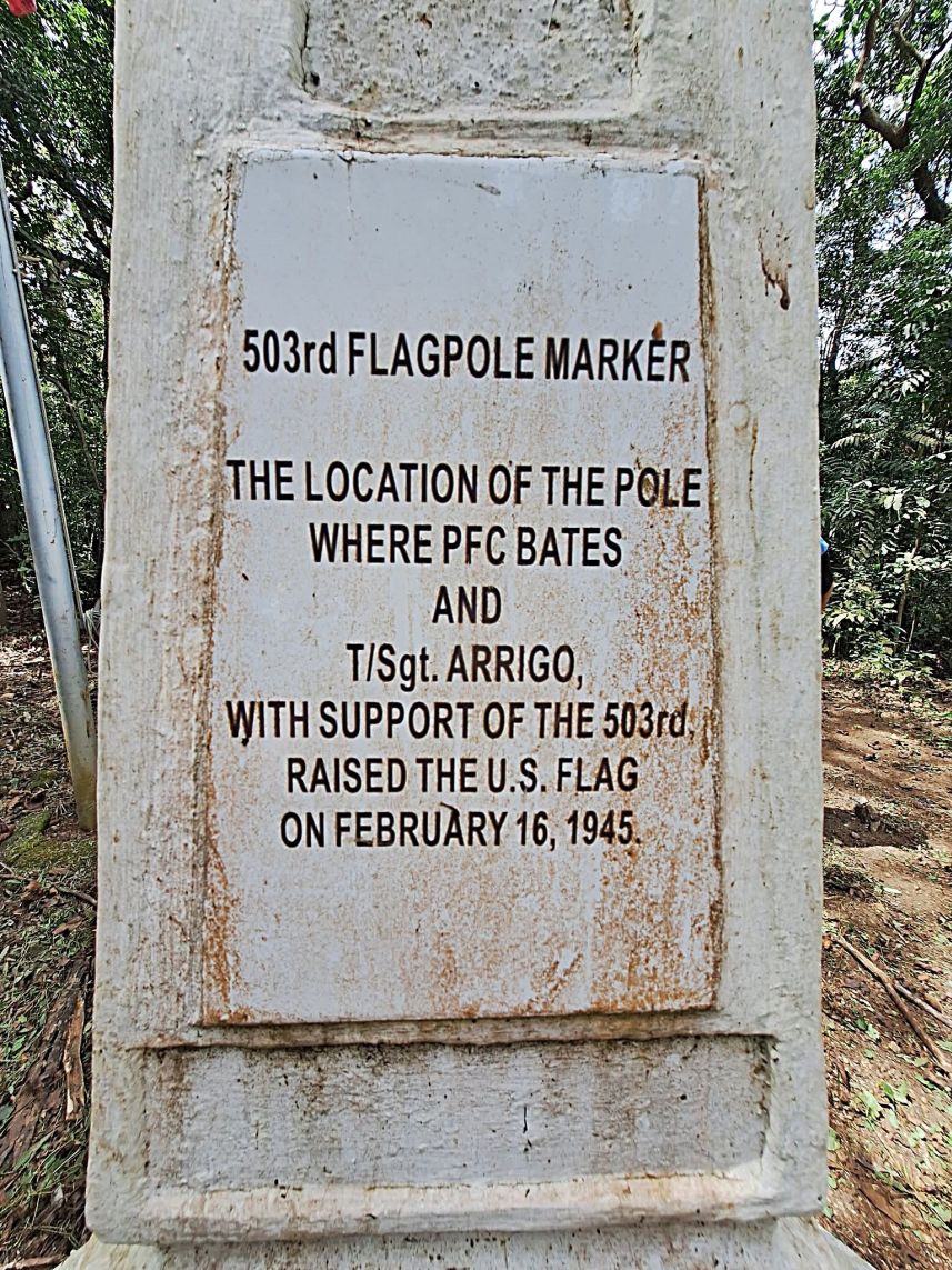 On February 16, 1945 Pfc. Clyde I. Bates and T/5 Frank 'Guy' Arrigo, both of the 503rd Parachute Regiment (PIR) raised the American flag over Corregidor Island. These men climbed the tallest remaining pole under Japanese sniper fire and flew the American flag for the first time since the surrender of the island 2 1/2 years ago. The 503rd PIR was part of the "Rock Force" which recaptured Corregidor Island in February 1945.