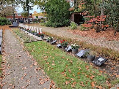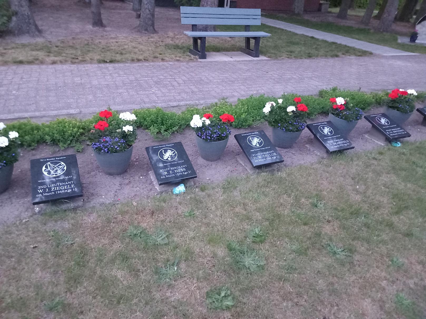 MarkerA rectangular black stone marker commemorating SSgt Donald Willis Taylor, waist gunner of B-17G "Blitzin' Betsy" (42-37886), 562nd Bombardment Squadron, 388th Bombardment Group (Heavy), 45th Combat Wing, 3rd Air Division, Eighth Air Force, who was Killed in Action. On the return from a mission to Klein Machnow, Berlin on 6 Mar 1944, B-17G #42-37886 'Blitzin' Betsy' was severely damaged by attacks from several FW190s causing it to collide with another 388th Group B-17, exploding in mid-air and crashing near Emmen, Netherlands. Installed in 2017, the marker displays the fallen soldiers name, date of death, age, service units, and unit insignia.