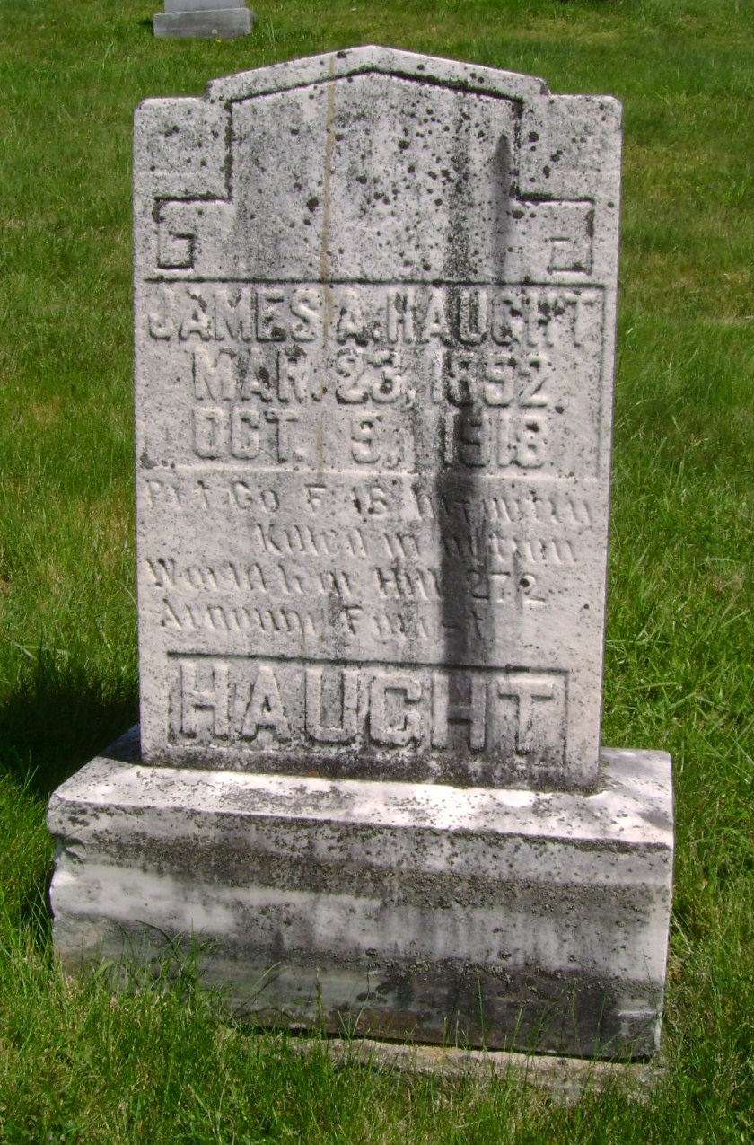 When James Alfred Haught and his twin sister Mary Alice were born on March 23, 1892, in Doddridge, West Virginia, their father, John, was 39, and their mother, Ann, was 33. He had three brothers and two sisters. He served in the U.S. Army during World War I as a Private in Company F, 16th Infantry Regiment, 1st Infantry Division. He was Killed in Action on October 9, 1918 and is now buried in Odd Fellows Cemetery, Salem, Harrison County, West Virginia, USA.