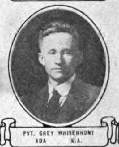 Grey E. Whisenhunt was born on October 31, 1890. He served in the U.S. Army during World War I as a Private First Class in Company K, 16th Infantry Regiment, 1st Infantry Division. He was Killed in Action on October 4, 1918 (at the age of 27) in France and is now buried in Rosedale Cemetery, Ada, Pontotoc County, Oklahoma, USA.