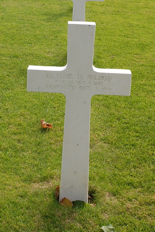 Claude D. Wilson entered the military service in Kentucky. He served in the U.S. Army during World War I as a Private in Company M, 16th Infantry Regiment, 1st Infantry Division. He was Killed in Action on October 2, 1918 and is now buried in Meuse-Argonne American Cemetery and Memorial, Romagne-sous-Montfaucon, Departement de la Meuse, Lorraine, France.