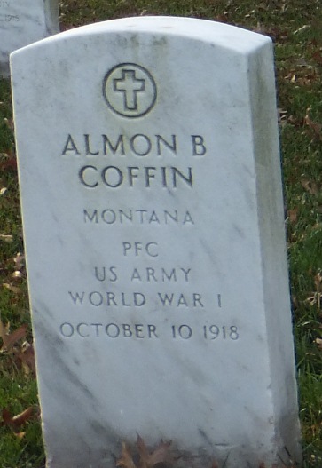 Almon B. Coffin served in the U.S. Army during World War I as a Private First Class in Machine Gun Company, 16th Infantry Regiment, 1st Infantry Division. He died from his wounds received in battle on October 10, 1918 and is now buried in Arlington National Cemetery, Arlington, Arlington County, Virginia, USA.