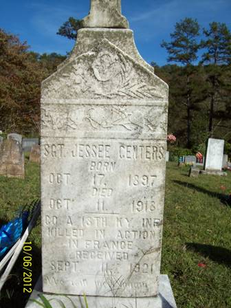 When Jessee Centers was born on October 17, 1897, in Breathitt, Kentucky, his father, Thomas, was 27 and his mother, Eliza, was 23. He served in the U.S. Army during World War I as a Sergeant in Company A, 18th Infantry Regiment, 1st Infantry Division. He was Killed in Action on October 11, 1918 at the age of 20 and is now buried in McIntosh Cemetery, Clayhole, Breathitt County, Kentucky, USA.