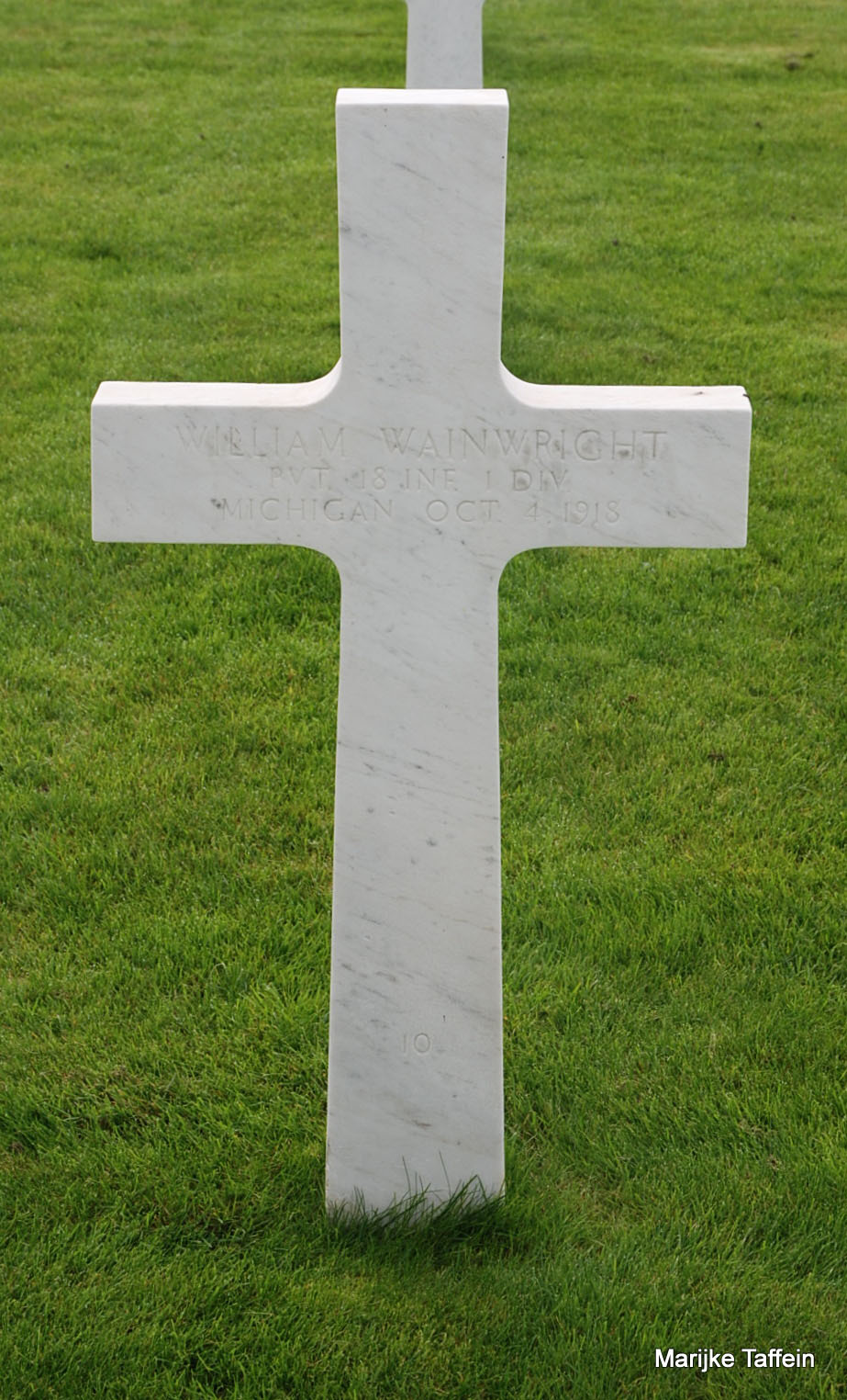 William Wainwright entered the military service in Michigan. He served in the U.S. Army during World War I as a Private in Company D, 18th Infantry Regiment, 1st Infantry Division. He was Killed in Action on October 4, 1918 and is now buried in Meuse-Argonne American Cemetery and Memorial, Romagne-sous-Montfaucon, Departement de la Meuse, Lorraine, France.