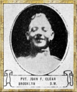 John Fj Clear entered the military service in New York. He served in the U.S. Army during World War I as a Private in Company H, 18th Infantry Regiment, 1st Infantry Division. He died from his wounds received in battle on November 22, 1918 and is now buried in St. Mihiel American Cemetery, Thiaucourt, France.
