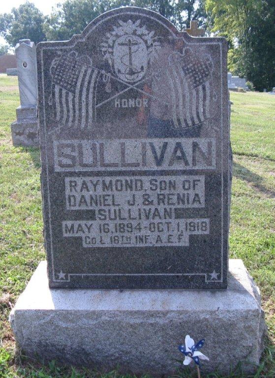 When Raymond Sullivan was born on May 16, 1894, in Illinois, his father, Daniel, was 33 and his mother, Sirena, was 28. He served in the U.S. Army during World War I as a Private in Company L, 18th Infantry Regiment, 1st Infantry Division. He was Killed in Action on October 1, 1918 at the age of 24 and is now buried in Harrison Cemetery, Buckner, Franklin County, Illinois, USA.