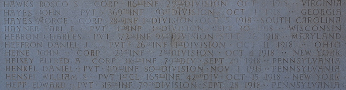 Daniel J. Heffron entered the military service in Ohio. He served in the U.S. Army during World War I as a Private in Company E, 26th Infantry Regiment, 1st Infantry Division. He was Killed in Action but declared "Missing" on October 11, 1918 and is memorialized on Tablets of the Missing, Meuse-Argonne American Cemetery and Memorial, Romagne-sous-Montfaucon, Departement de la Meuse, Lorraine, France.