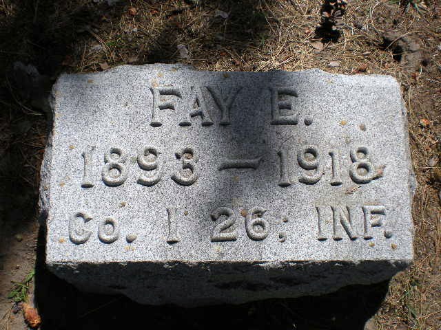 Fay E. Rouse was born in 1893. He served in the U.S. Army during World War I as a Private in Company I, 26th Infantry Regiment, 1st Infantry Division. He was Killed in Action in 1918 and is now buried in Mountain Home Cemetery, Otsego, Allegan County, Michigan, USA.