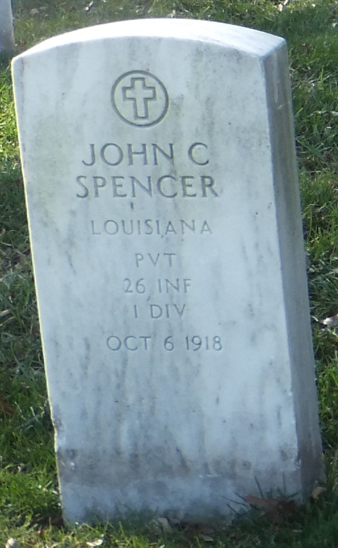 John C. Spencer entered the military service in Tennessee. He served in the U.S. Army during World War I as a Corporal in Company C, 28th Infantry Regiment, 1st Infantry Division. He was Killed in Action on October 9, 1918 and is now buried in Meuse-Argonne American Cemetery and Memorial, Romagne-sous-Montfaucon, Departement de la Meuse, Lorraine, France.