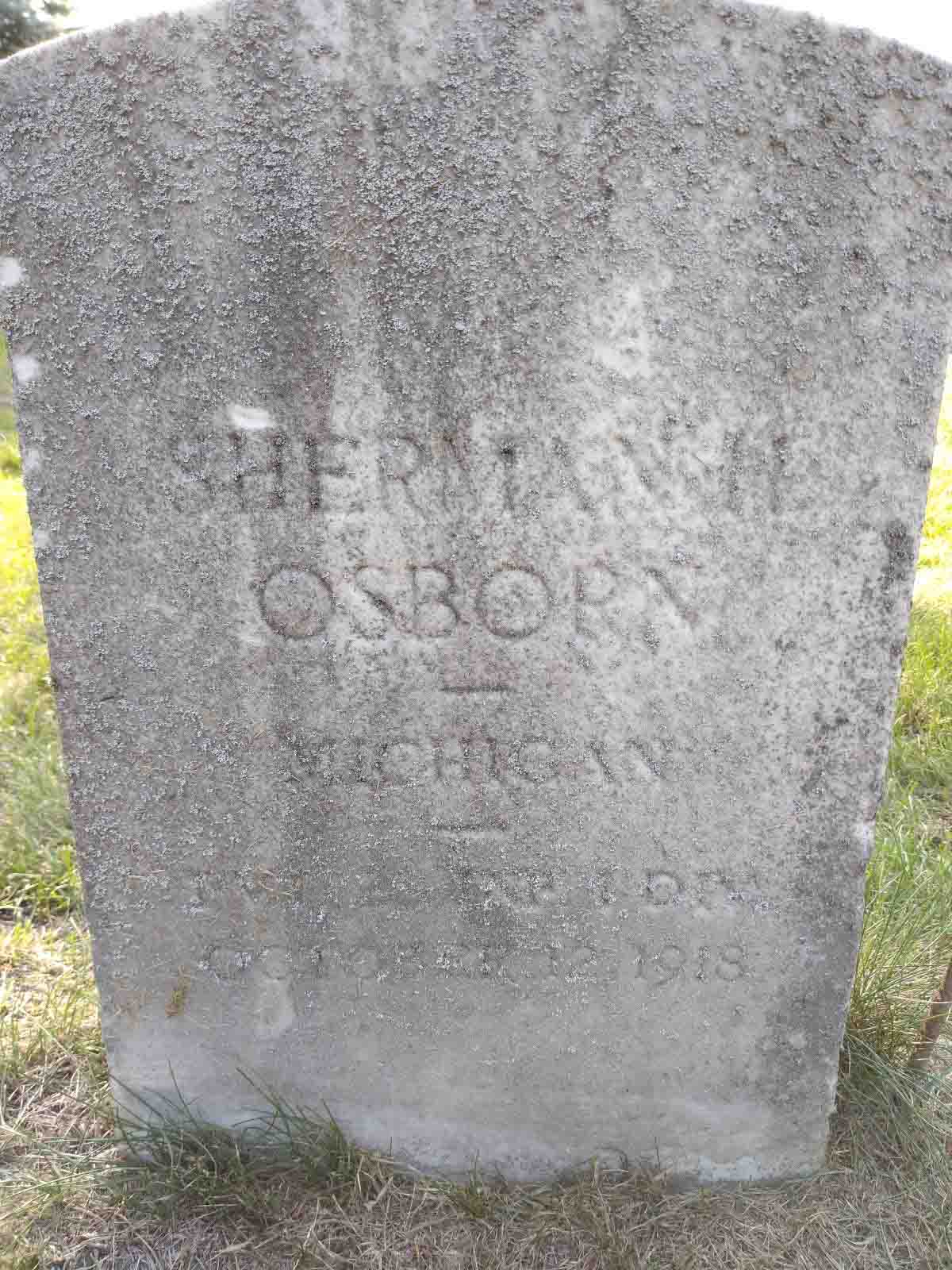 Sherman H. Osborn served in the U.S. Army during World War I as a Private in Company G, 28th Infantry Regiment, 1st Infantry Division. He was Killed in Action on October 12, 1918 and is now buried in Erie Union Cemetery, Erie, Monroe County, Michigan, USA.