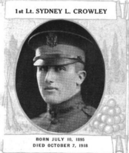 When Sydney L. Crowley was born on July 18, 1895, in Milwaukee, Wisconsin, his father, William, was 28 and his mother, Katherine, was 26. He had four sisters. He worked for the engineering dept of Western Electric before enlisting. He served in the U.S. Army during World War I as a Second Lieutenant in Company H, 28th Infantry Regiment, 1st Infantry Division. He was wounded at the battle of Cantigny and returned after six weeks to his company. He then fought in the Soissons and St Mihiel Offensives and was leading his platoon in an attack when he was severely injured. He died on October 7, 1918 in Base Hospital Angers, France and is now buried in Meuse-Argonne American Cemetery and Memorial, Romagne-sous-Montfaucon, Departement de la Meuse, Lorraine, France.