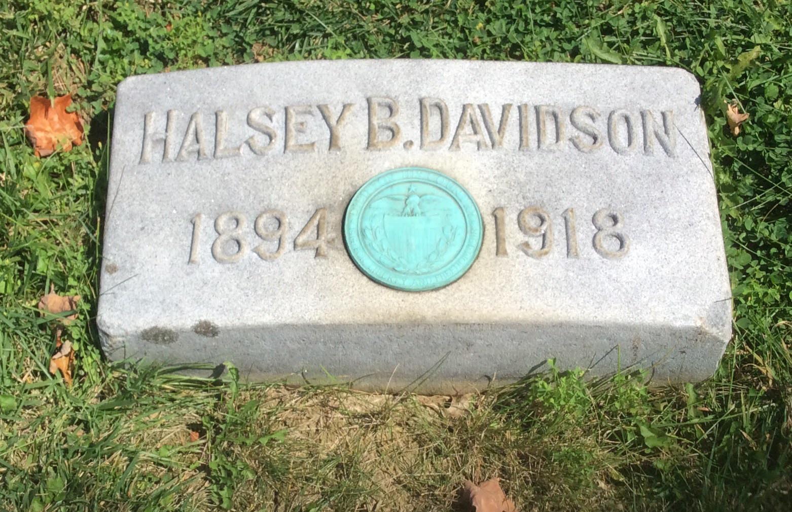 Halsey Burr Davidson was born on September 13, 1894 in Ashland, Kentucky. He was a farmer at the time of his enlistment. He served in the U.S. Army during World War I as a Private First Class in Company M, 28th Infantry Regiment, 1st Infantry Division. He was Killed in Action in 1918 and is now buried in Mount Moriah Cemetery, Withamsville, Clermont County, Ohio, USA.