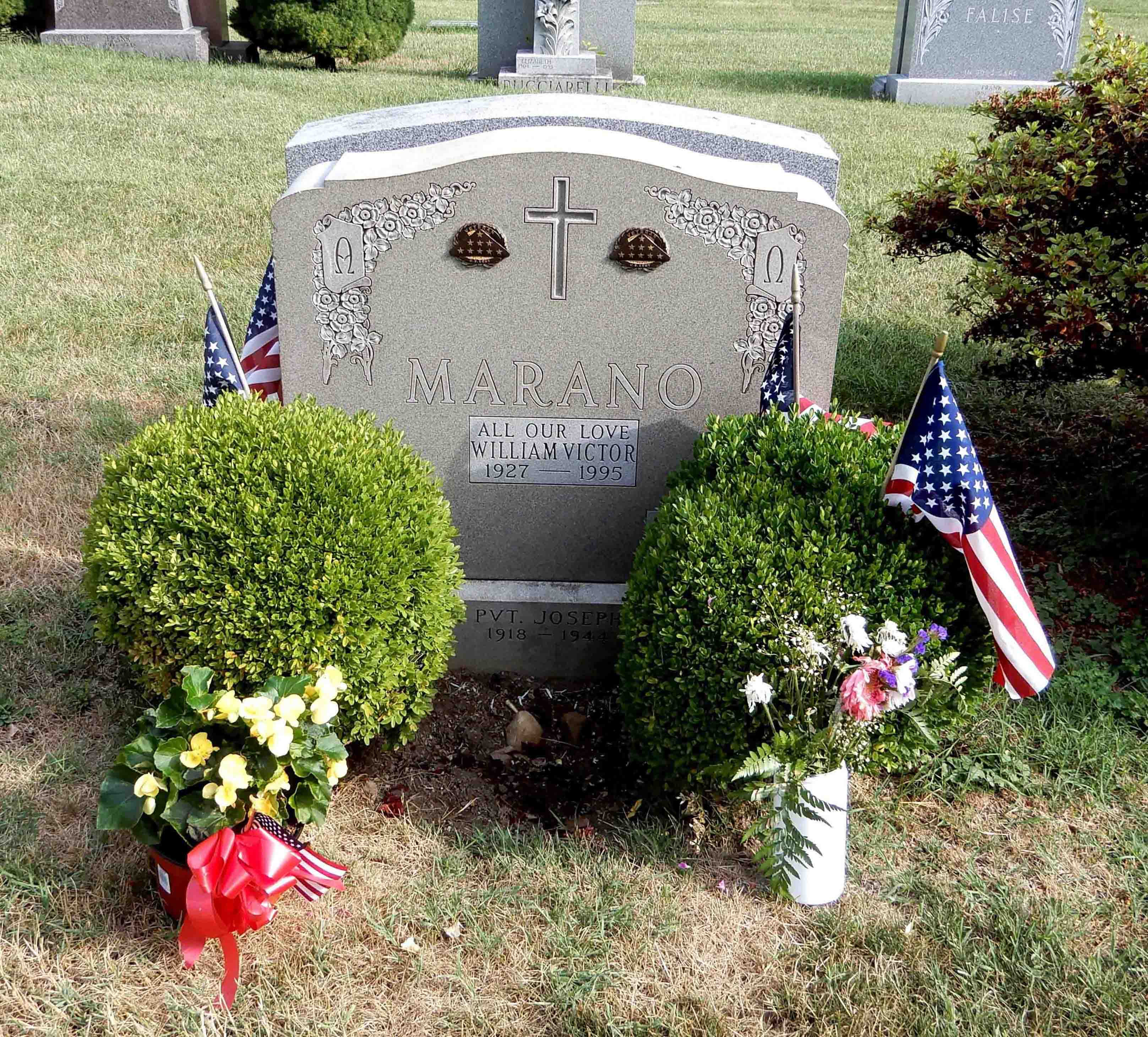 Anthony Marano was born in 1918. He was the son of Donato Marano and Carmela Marano. He served in the 363rd Infantry, 91st Infantry Division as a Private First Class during World War II. He died in Florence, Italy on September 29, 1944 and is now buried in the Saint John Cemetery, Middle Village, Queens County, New York, USA.