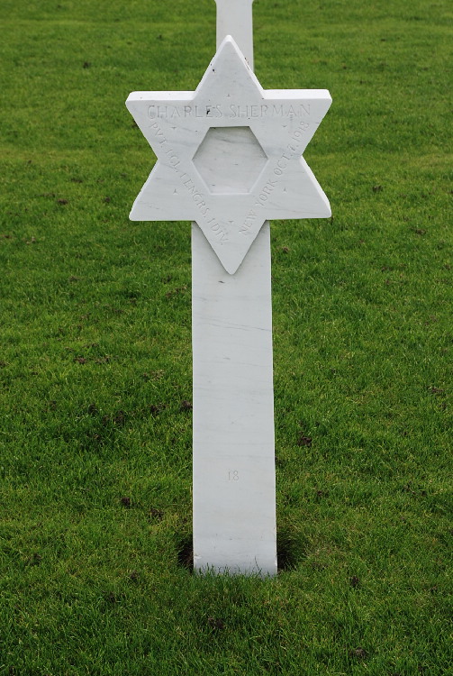 Charles Sherman entered the military service in New York. He served in the U.S. Army during World War I as a Private First Class in Company C, 1st Engineer Combat Battalion, 1st Infantry Division. He was Killed in Action on October 7, 1918 and is now buried in Meuse-Argonne American Cemetery and Memorial, Romagne-sous-Montfaucon, Departement de la Meuse, Lorraine, France.