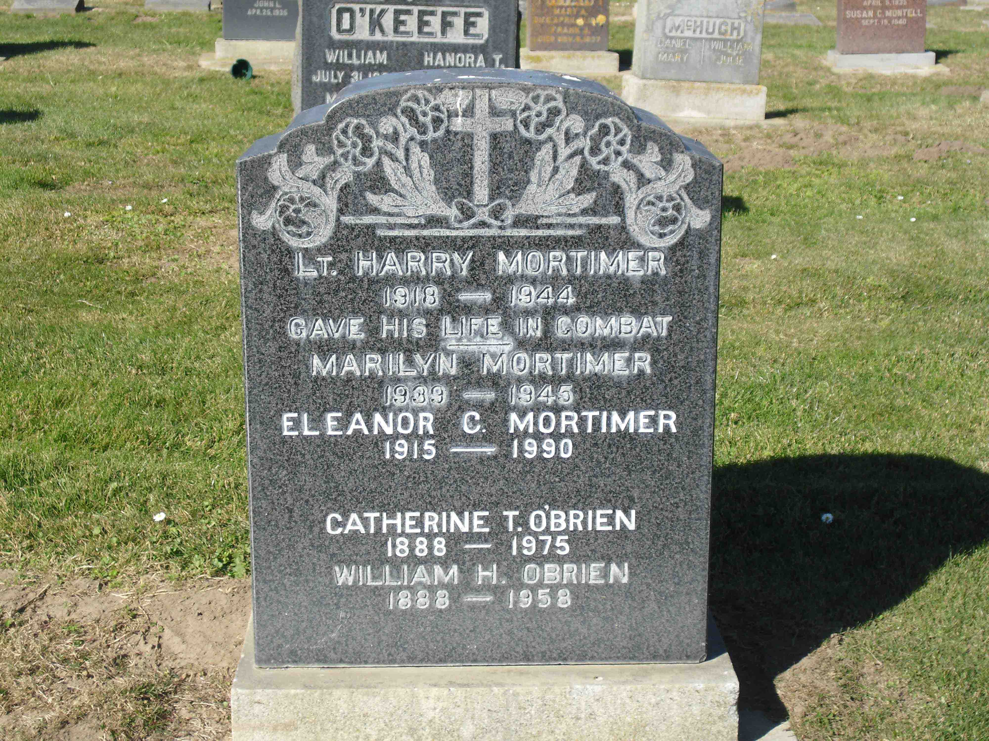 Harry F. Mortimer was born in 1918. He served in the U.S. Army during World War II as a Lieutenant in the 1st Infantry Division. He died in 1944 and is now buried in Holy Cross Catholic Cemetery, Colma, San Mateo County, California, USA.