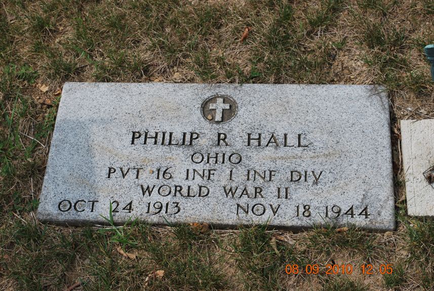 Philip R. Hall was born on October 24, 1913. He served in the U.S. Army during World War II as a Private in the 16th Infantry Regiment, 1st Infantry Division. He was Killed in Action on November 18, 1944 in Germany at the age of 31 and is now buried in Walnut Grove Cemetery, Delphos, Allen County, Ohio, USA.