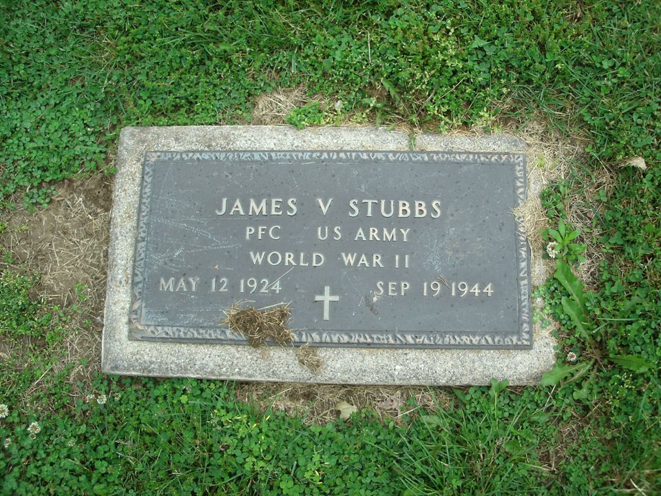 James V. Stubbs was born on May 12, 1924 in Henry County, Indiana. He was the son of Charles Arden Stubbs and Mollie Vaughn Coffin. James was a graduate of the Spiceland high school and served in the U.S. Army during World War II as a Private First Class in the 1st Infantry Division. He had never had a furlough home from the time he entered the service. He died from his wounds received in battle on September 19, 1944 in Germany at the age of 20 and is now buried in Circle Grove Cemetery, Spiceland, Henry County, Indiana, USA.