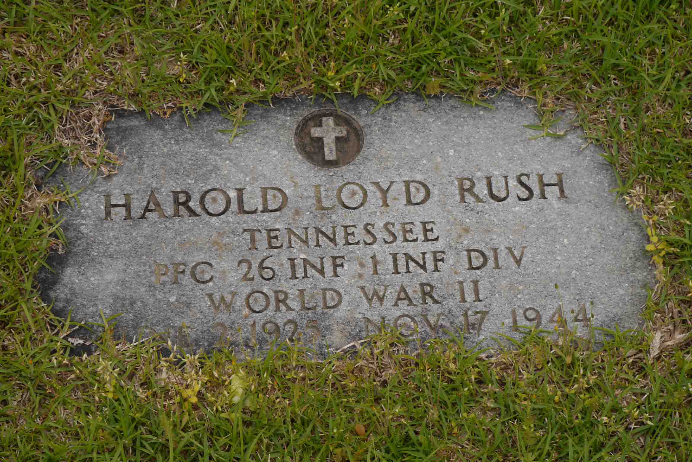 Harold L. Rush was born on June 2, 1925. He was the son of Andrew Jackson Rush and Pheby Carnal Rush. Harold served in the U.S. Army during World War II as a Private First Class in the 26th Infantry Regiment, 1st Infantry Division. He died on November 17, 1944 and is now buried in Parkers Crossroads Cemetery, Parkers Crossroads, Henderson County, Tennessee, USA.