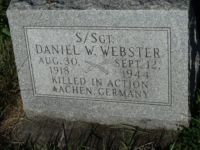 Daniel W. Webster was born on August 30, 1918. He served in the U.S. Army during World War II as a Staff Sergeant in the 16th Infantry Regiment, 1st Infantry Division. He was Killed in Action on September 12, 1944 in Germany at the age of 26 and is now buried in Willowbrook Cemetery, Fisher, Champaign County, Illinois, USA.