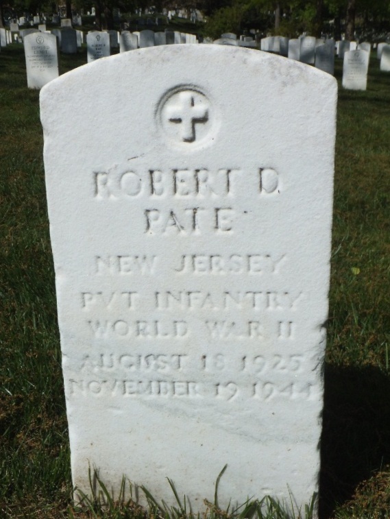 Robert D. Pate was born on August 18, 1925. He was the son of Wylie G. Pate and Rosa H. Pate. Robert served in the U.S. Army during World War II as a Private in the 1st Infantry Division. He died on November 19, 1944 at the age of 19 and is now buried in Arlington National Cemetery, Arlington, Arlington County, Virginia, USA.