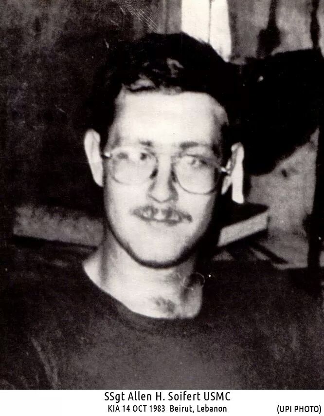 Allen Harry Soifert was born on August 19, 1958 in Toronto, Toronto Municipality, Ontario, Canada. He was a Sergeant in the United States Marine Corps. Allen was sent to Lebanon as a peace-keeper in Beirut. But, on October 14, 1983 at 10:30AM, two jeeps traveling on the airport perimeter road came under attack. The first jeep was hit, and the driver was shot through both legs. The driver of the second jeep, Staff Sergeant Soifert, was shot in the chest, and his jeep overturned. Both Landing Site Red and Charlie Company responded, firing at the snipers. The two wounded Marines were medevaced to the USS Iwo Jima; however, Staff Sergeant Soifert died shortly thereafter. both the perimeter road and LS Red were closed to all travel. He is now buried in the Beth Abraham Cemetery, Nashua, Hillsborough County, New Hampshire, USA.