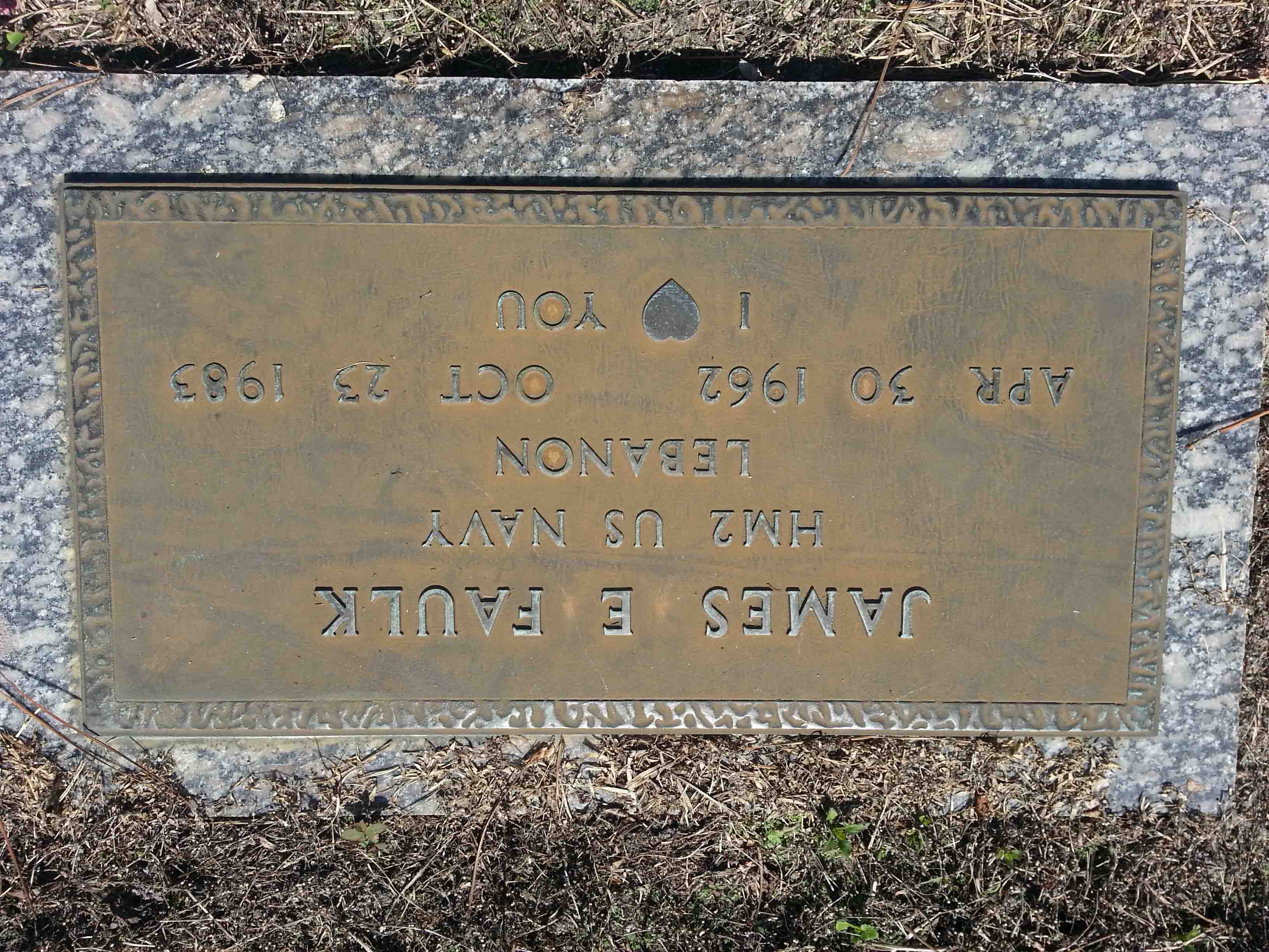 James Ellis Faulk was born on April 30, 1962 in Alabama. He served in the United States Navy as a Hospital Corpsman Second Class. James was killed in the terrorist bombing of the United States Marine barracks. In the early morning hours of 23 Oct. 1983, a truck loaded with explosives crashed through the security perimeter of the USMC Barracks in Beirut, Lebanon. In the explosion that followed, 241 US Military personnel were killed and 80 serious wounded. He is now buried in the Forest Lawn Memorial Cemetery, Panama City, Bay County, Florida, USA. His name is commemorated on the Beirut monument, on the grounds of the US Embassy in Lebanon and ranked as a Hospital Corpsman Third Class.
