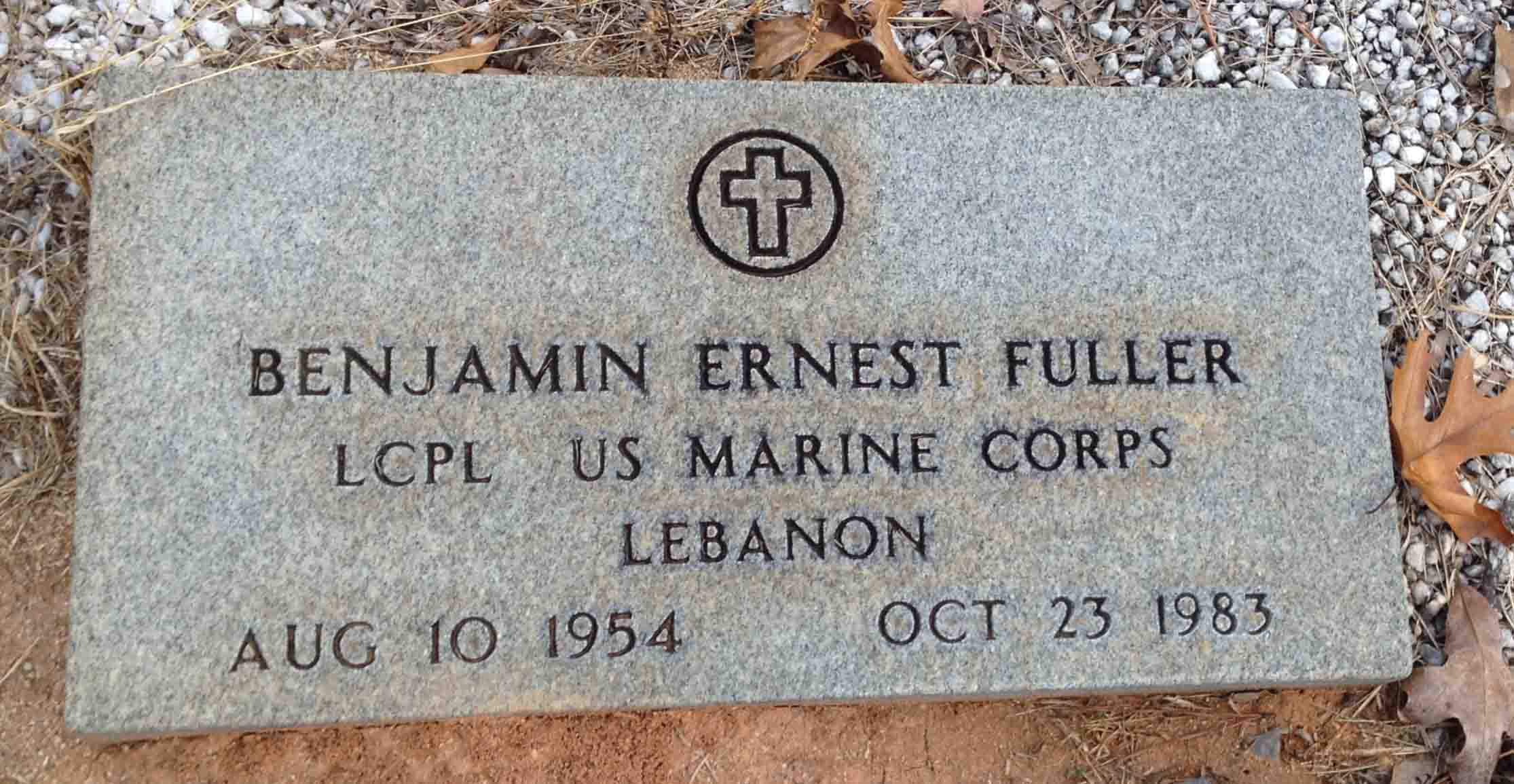 Benjamin Ernest Fuller, Jr. was born on August 10, 1954 in Decatur County, Georgia. He was the son of Ernest C. Fuller and Charlotte Spratlin Fuller. Benjamin was killed in the terrorist bombing of the United States Marine barracks. In the early morning hours of 23 Oct. 1983, a truck loaded with explosives crashed through the security perimeter of the USMC Barracks in Beirut, Lebanon. In the explosion that followed, 241 US Military personnel were killed and 80 serious wounded. He is now buried in the Sandy Springs First Baptist Church Cemetery, Sandy Springs, Fulton County, Georgia, USA.
