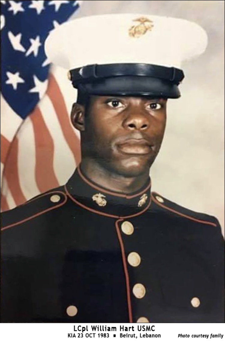 William Hart was born on July 22, 1961 in Camden, Camden County, New Jersey. He served in the United States Marine Corps as a Corporal. William was killed in the terrorist bombing of the United States Marine barracks. In the early morning hours of 23 Oct. 1983, a truck loaded with explosives crashed through the security perimeter of the USMC Barracks in Beirut, Lebanon. In the explosion that followed, 241 US Military personnel were killed and 80 serious wounded. He is now buried in the Cedar Grove Cemetery, New London, New London County, Connecticut, USA.