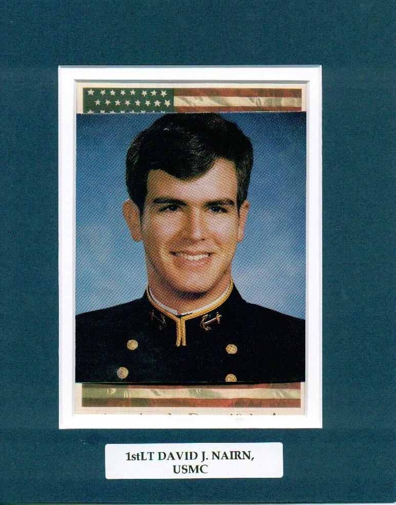 David Johns Nairn was born on June 17, 1960 in Woodland, Yolo County, California. He served in the United States Marine Corps as a First Lieutenant. David was killed in the terrorist bombing of the United States Marine barracks. In the early morning hours of 23 Oct. 1983, a truck loaded with explosives crashed through the security perimeter of the USMC Barracks in Beirut, Lebanon. In the explosion that followed, 241 US Military personnel were killed and 80 serious wounded. He is now buried in the Arlington National Cemetery, Arlington, Arlington County, Virginia, USA.