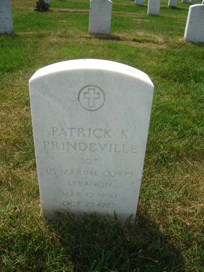 Patrick Kerry Prindeville was born on March 31, 1960 in Hempstead, Nassau County, New York. He served in the United States Marine Corps as a Staff Sergeant. Patrick was killed in the terrorist bombing of the United States Marine barracks. In the early morning hours of 23 Oct. 1983, a truck loaded with explosives crashed through the security perimeter of the USMC Barracks in Beirut, Lebanon. In the explosion that followed, 241 US Military personnel were killed and 80 serious wounded. He is now buried in the Arlington National Cemetery, Arlington, Arlington County, Virginia, USA. His headstone shows his rank as a Sergeant.