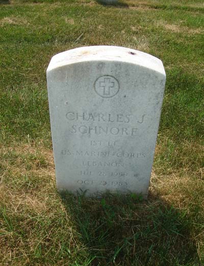 Charles Jeffrey Schnorf was born on July 28, 1959 in Framingham, Middlesex County, Massachusetts. He was the son of Richard Colfax Schnorf and Margaret Mettler Schnorf. Charles served in the United States Marine Corps as a First Lieutenant. He was killed in the terrorist bombing of the United States Marine barracks. In the early morning hours of 23 Oct. 1983, a truck loaded with explosives crashed through the security perimeter of the USMC Barracks in Beirut, Lebanon. In the explosion that followed, 241 US Military personnel were killed and 80 serious wounded. He is now buried in the Arlington National Cemetery, Arlington, Arlington County, Virginia, USA.