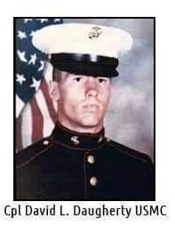 David Lee Daugherty was born on October 28, 1959 in Cleveland, Cuyahoga County, Ohio. He served in the "Golf" Company, 2nd Battalion, 8th Marines (2/8) of the 22nd Marine Expedition Unit (MAU), United States Marine Corps as a Corporal. David was a member of the Multinational Peacekeeping Force in Beirut, Lebanon in 1982 and 1983. On the evening of December 4, 1893, a reinforced squad of Golf Company, 2nd Battalion, 8th Marines, led by Sgt Manuel A. Cox, came under attack while manning an observation post known as Checkpoint 7, south of Beirut International Airport (BIA), near the suburb known as Ash Shuwayfat. 2/8 had arrived in Beirut weeks earlier as part of the 22nd Marine Amphibious Unit (MAU) to relieve 1/8, having been delayed due to their participation in Operation Urgent Fury (invasion of Grenada).