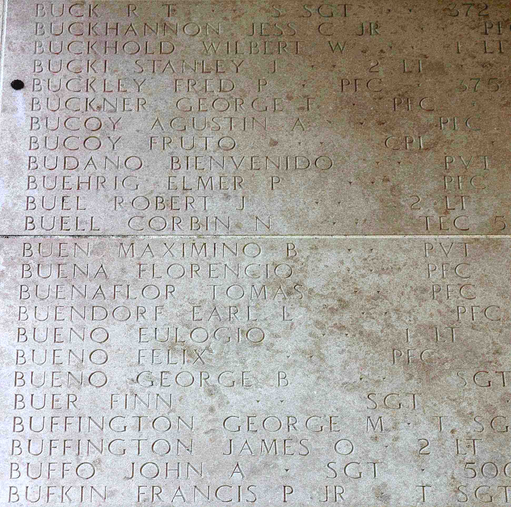 C-46A #43-47211 took off, with a crew of 4, from Hauchung, China on a cargo mission to Peishiyi, China. After takeoff they were not seen nor heard from again. The entire crew was lost, it was April 7, 1945. Having actually gone "Missing" on the above date, he was not officially declared by the military as being dead until October 7, 1945. His name is commemorated on the Walls of the Missing, Manila American Cemetery, Taguig City, Philippines. He also has a cenotaph located in Hazlehurst Cemetery, Hazlehurst, Copiah County, Mississippi, USA.