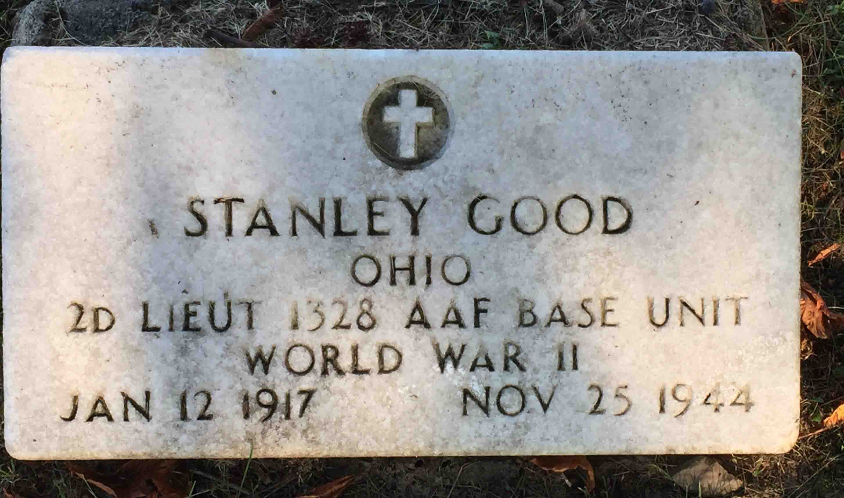 Stanley B. Good was born on January 12, 1917. He served in the 1328th Army Air Force Base Unit as a Second Lieutenant and Co-Pilot of an aircraft during World War II. Stanley died on November 25, 1944 at the age of 27 and is now buried in the New Four Mile Cemetery, Austintown, Mahoning County, Ohio, USA. He was one of over 2000 Americans who lost their lives defending China from their Japanese invaders from 1941-1945. He is commemorated on the The Monument to the Aviation Martyrs in the War of Resistance Against Japan in Nanjing, China.