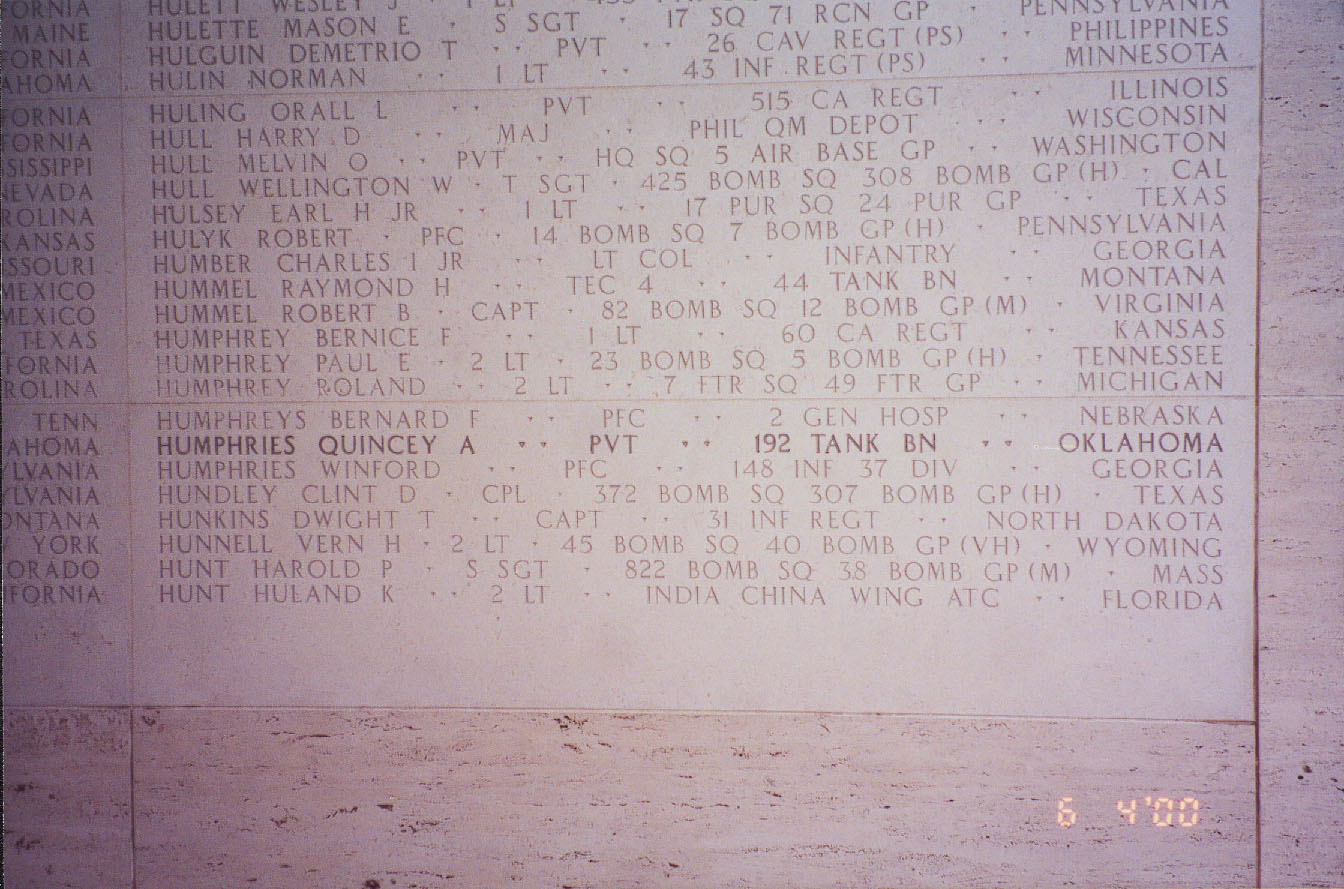 Frank B. Hunter was born on June 13, 1918. He served in the 1347th Army Air Base Unit as a Sergeant and Assistant Engineer of an aircraft during World War II. Frank died on April 16, 1945 at the age of 26 and is now buried in the Forsyth Memorial Park, Winston-Salem, Forsyth County, North Carolina, USA. He was one of over 2000 Americans who lost their lives defending China from their Japanese invaders from 1941-1945. He is commemorated on the The Monument to the Aviation Martyrs in the War of Resistance Against Japan in Nanjing, China.