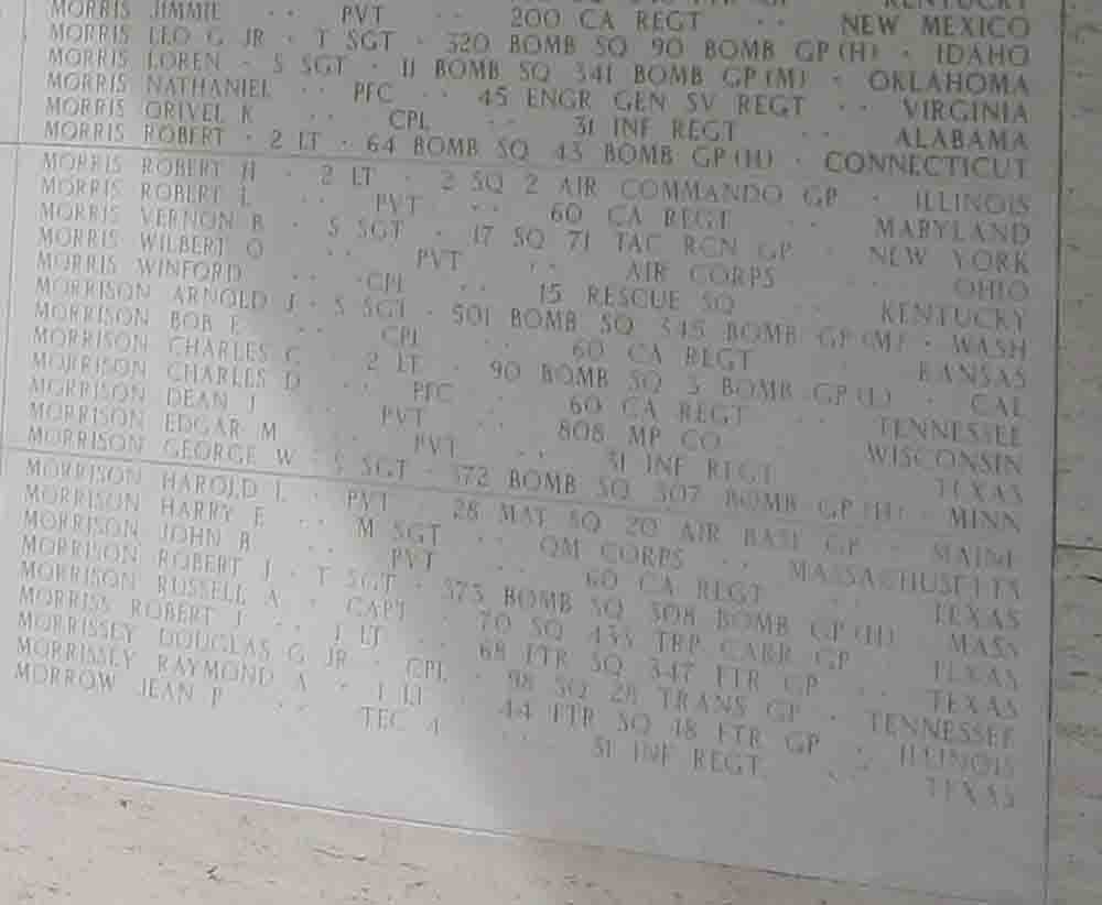 Robert was one of over 2000 Americans who lost their lives defending China from their Japanese invaders from 1941-1945. He is also commemorated on the The Monument to the Aviation Martyrs in the War of Resistance Against Japan in Nanjing, China but death date is inscribed as 1944-09-07.