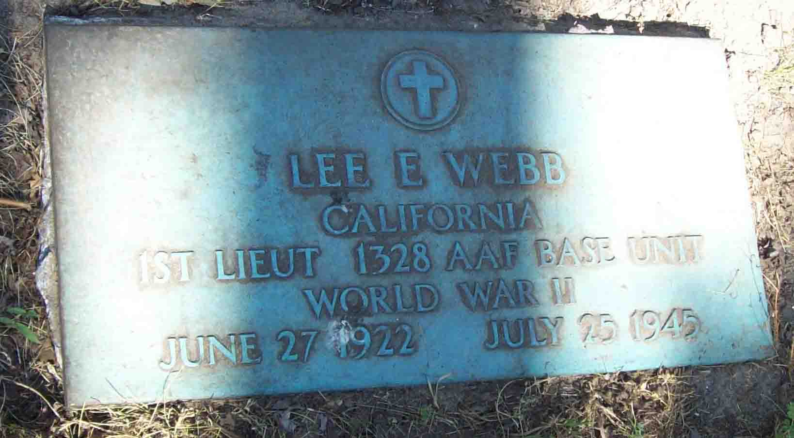 Lee E. Webb was born on June 27, 1922. He served in the 1328th Army Air Force Base Unit as a Second Lieutenant and Co-Pilot of an aircraft during World War II. He died on July 25, 1945 at the age of 23 and is now buried in the Mona View Cemetery, Muskegon Heights, Muskegon County, Michigan, USA. 2Lt Webb was one of over 2000 Americans who lost their lives defending China from their Japanese invaders from 1941-1945. He is commemorated on the The Monument to the Aviation Martyrs in the War of Resistance Against Japan in Nanjing, China.