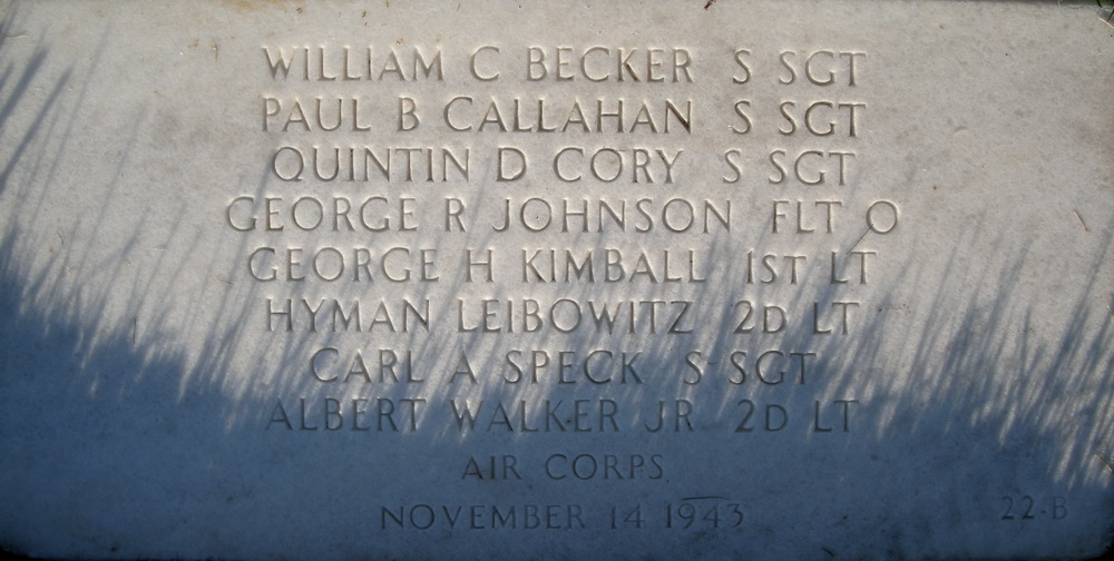 Albert Walker, Jr. served in the US Air Corps as a Second Lieutenant and Bombardier of an aircraft during World War II. Assigned to the 10th Air Force, they were attacked by fifteen to twenty Japanese fighters. After several attacks, Walker's plane had suffered heavy damage and went out of control. It rolled over on it's back and and dived straight into the ground from 11,000 feet. Two of the other planes were shot down as well. Albert is now buried in the Jefferson Barracks National Cemetery, Lemay, St. Louis County, Missouri, USA in a common grave with his crew.