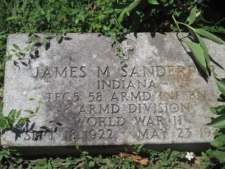 James Monroe Sanderfur was born on September 18, 1922 in Indiana. Corporal Sanderfur entered service November 30, 1942, and received his training for the Army Medical Corps at Fort Bliss, Tex. In 1944, he was transferred to Camp Campbell, Ky., and later that year was sent overseas, to served with a medical detachment of the Ninth Army in Europe.