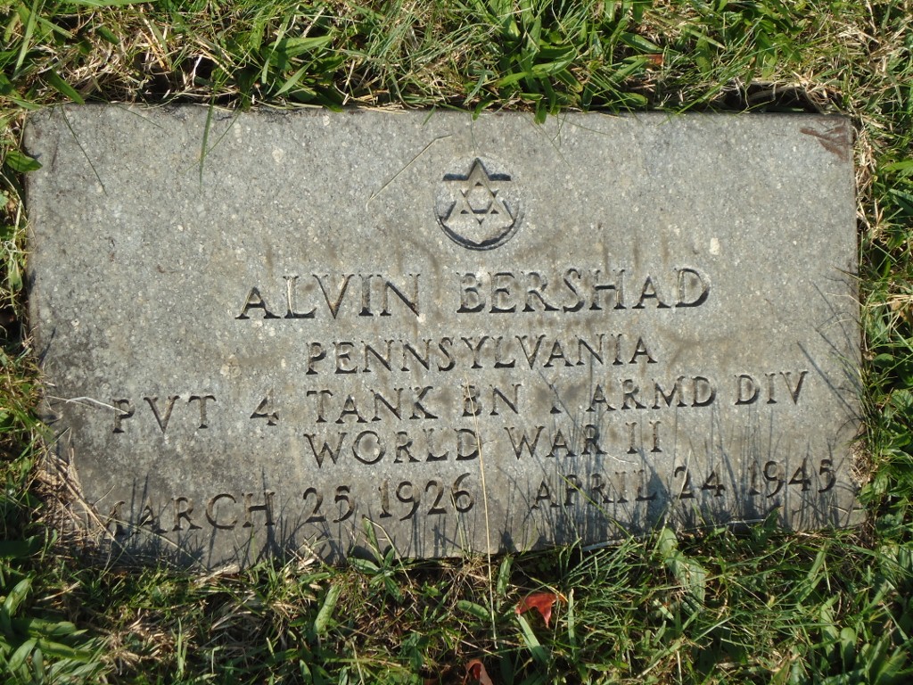 Alvin Bersad was born on March 25, 1926 and was from Philadelphia, Pennsylvania.. He served in the 4th Tank Battalion, Combat Command B of the 1st Armored Division. He fell on April 24, 1945 while liberating the town of Cadelbosco di Sopra. A memorial park in the town remembers his sacrifice. He was just 19 years old.