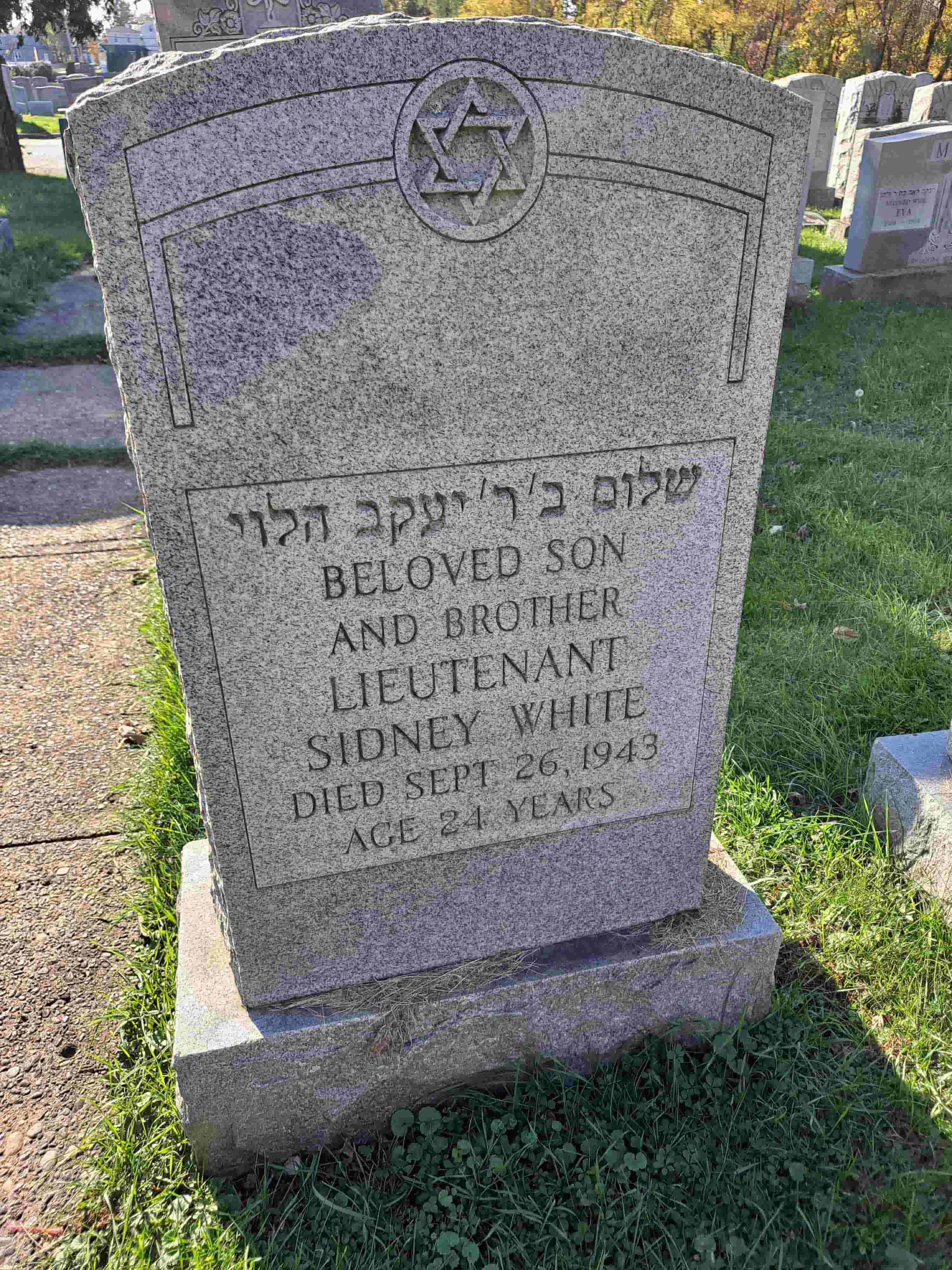 Sidney S. White was born in 1919 in Pennsylvania. He served as a First Lieutenant and an Observer on the B-17 "Dorsal Queen" #42-30264, 551st Bomber Squadron, 385th Bomber Group, Heavy, U.S. Army Air Force during World War II. His plane, while on a return mission from Reims, France, was involved in a mid-air collision with B-17 #42-3290 "Raunchy Wolf" also known as "El Lobo." They crashed at Tillingham Hall Farm, Bulphan, England. The entire crews of both B-17's were killed except Ssgt John J. Adams of the Dorsal Queen who was the only survivor.