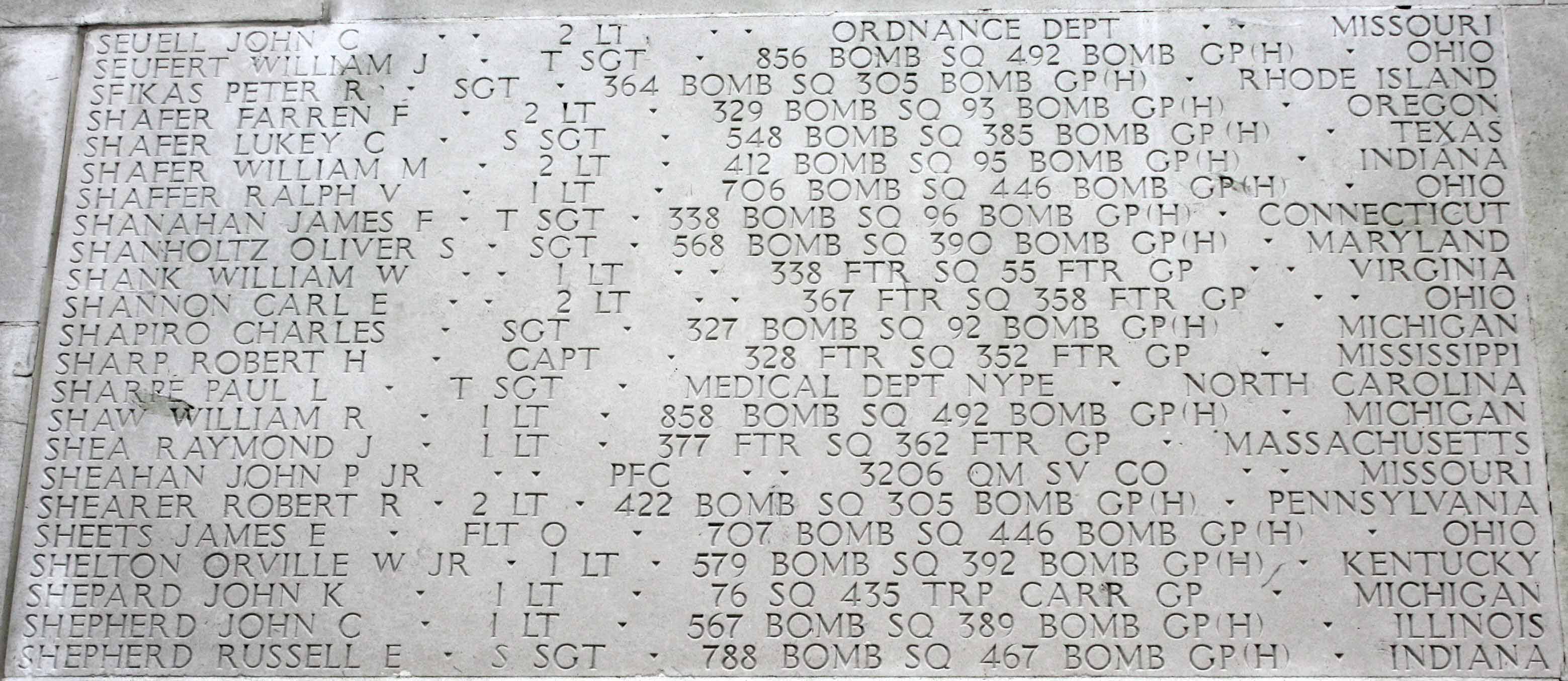 1LT was declared "Missing in Action" on April 11, 1944 and his name is memorialized on the Tablets of the Missing, Cambridge American Cemetery, Cambridge, United Kingdom.